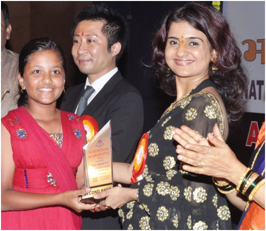 NRUTHYARTHI KALAKSHETRA in National Harmony 2011 Bhav Raag Taal- a prestigious National Extravaganza Fest / Competition in Pune & won the Second Best & Third Best Prize in Bharatanatyam Category & was felicitated by the hands of Famous Film Actress Amruta Subhash in Presence of Unesco's Cultural Representative Mr. Takhiko Makino.